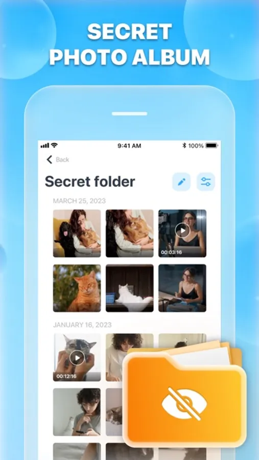 - Hide your personal photos and videos in the Secret Folder.