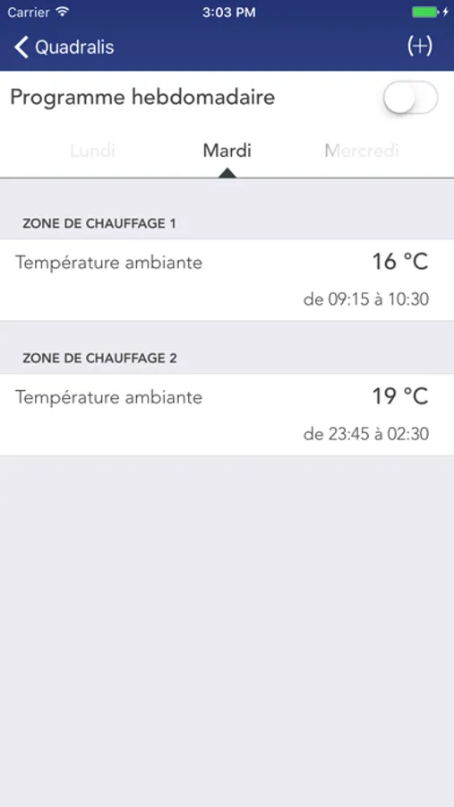 You can increase / reduce the requested room temperature, change the mode and program specific temperatures over different periods in the week.