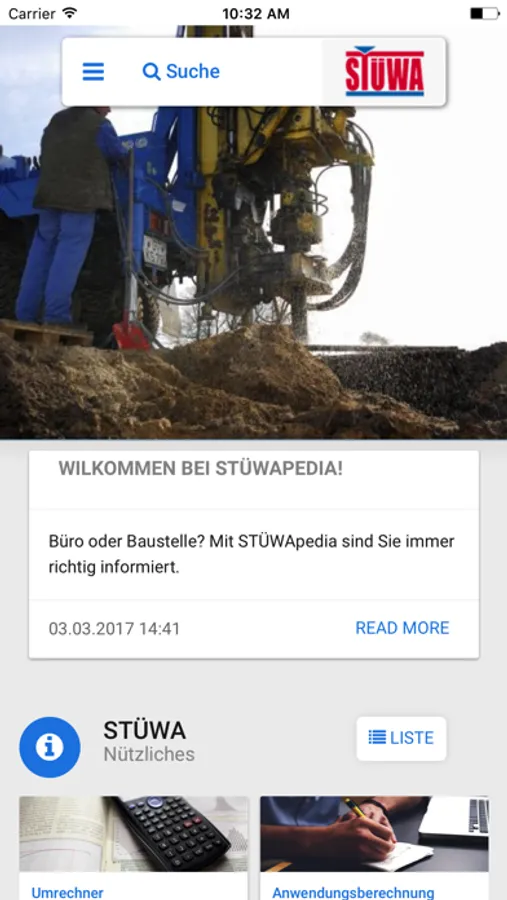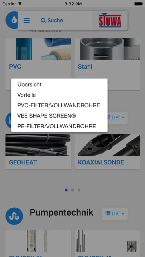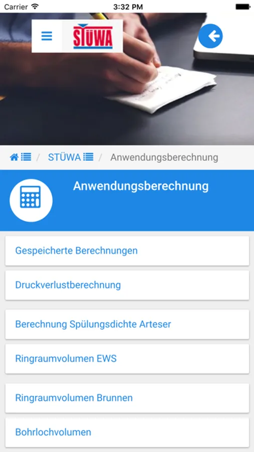 Die App der STÜWA Konrad Stükerjürgen GmbH ist ein praktischer und einfach bedienbarer Alltagshelfer rund um die Themen Brunnenbau, Wasserversorgung, Pumpenauslegung, Geotechnik, Bohrtechnik und Geothermie. Mithilfe der kostenlosen App können Sie mit wenigen Klicks wichtige Berechnungen durchführen, detaillierte Produkt-Datenblätter einsehen, auf ein umfangreiches Nachschlagewerk zurückgreifen und sich über aktuelle branchenrelevante Themen informieren.