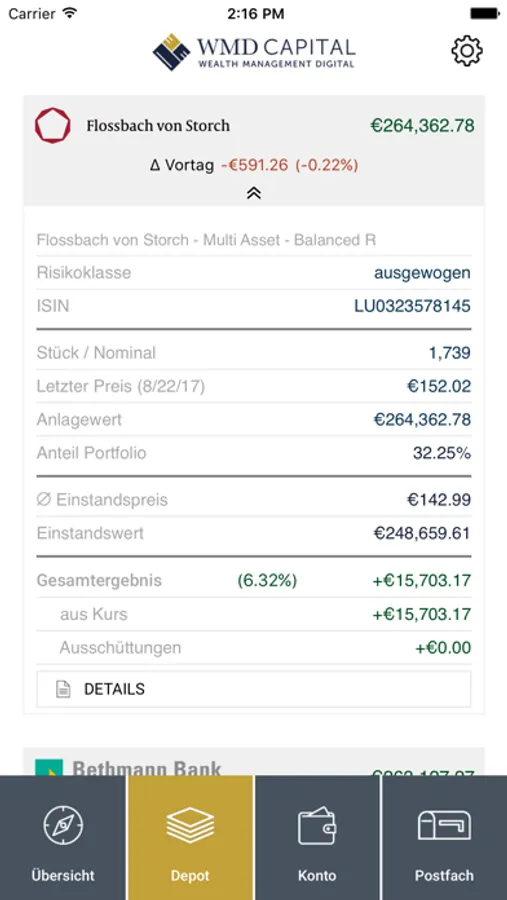 • Tagesaktuelle Übersicht ihrer Vermögensanlage