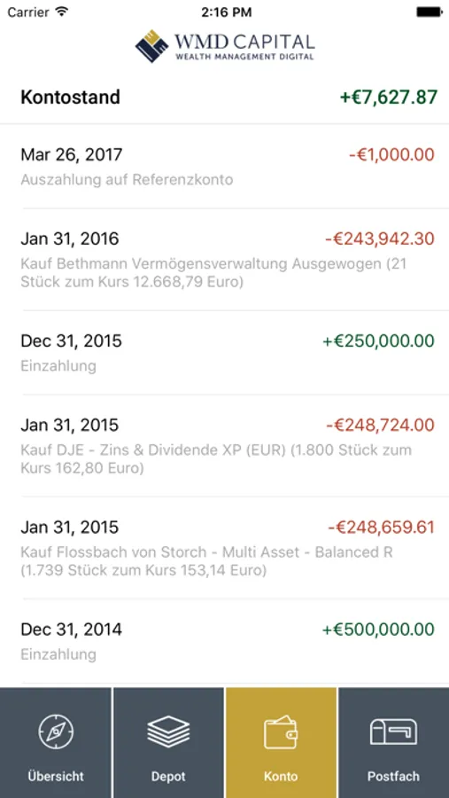 Die digitale Lösung von WMD Capital inklusive Depot der Partnerbank UBS und dem WMD-Finanz-Cockpit für Desktop, Tablet und Smartphone erhalten Anleger für eine günstige pauschale Service Fee – ohne versteckte Provisionen und zu Konditionen, wie sie meist nur Großanlegern vorbehalten sind.