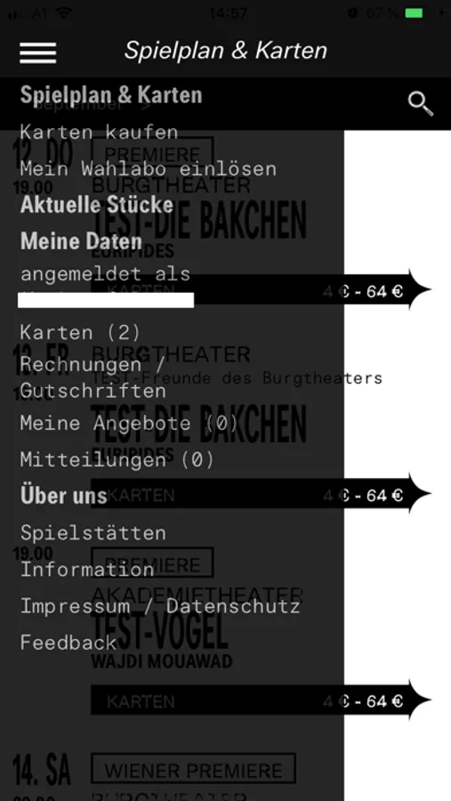 Spielplan | aktuelle Informationen | Angebote Karten kaufen | Wahlaboschecks einlösen | Ensemble | Vorverkaufsbedingungen | Spielstätten