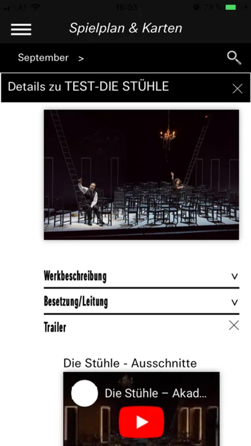 Sie finden in der App auch Infos zu Ensemble und Spielstätten/Anfahrt bzw. Vorverkaufsbedingungen.