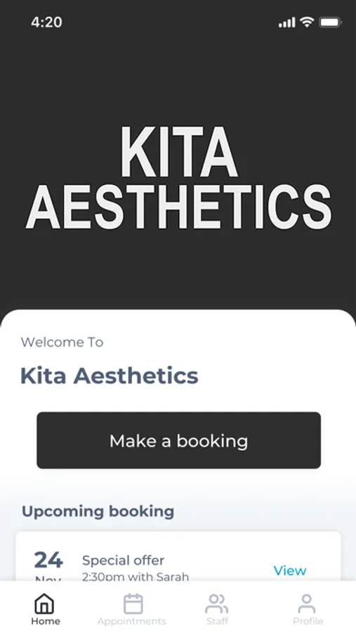 The Kita Aesthetics app makes booking your appointments and managing your loyalty points even easier. You're just a few taps away from feeling good and looking great!