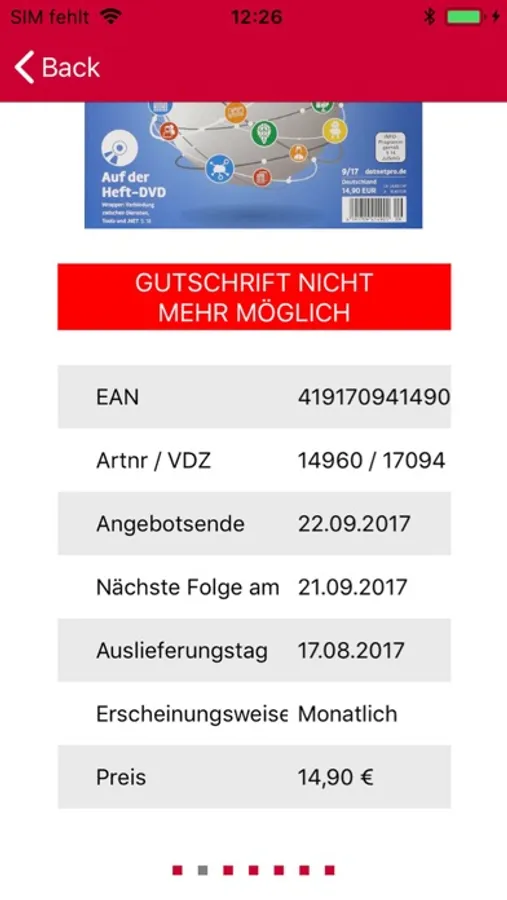 Artikelnummer & VDZ-Nr, Folge & Preis, Datum über Auslieferung, Angebotsende und nächste Folge, Erscheinung & Objektgruppe.