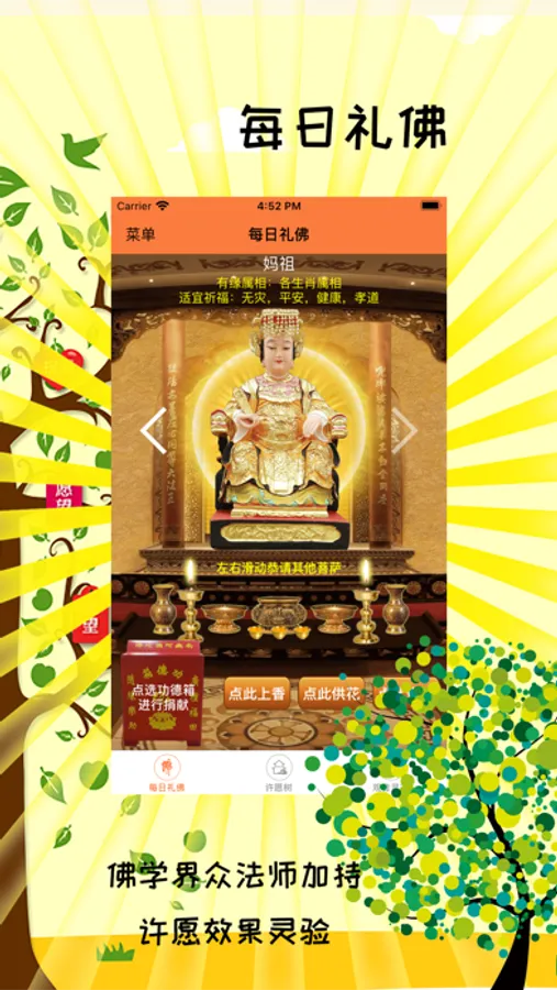 1.每日可免费许愿,名寺大法师在线加持,借众佛友的功德回响力量,帮你实现大愿