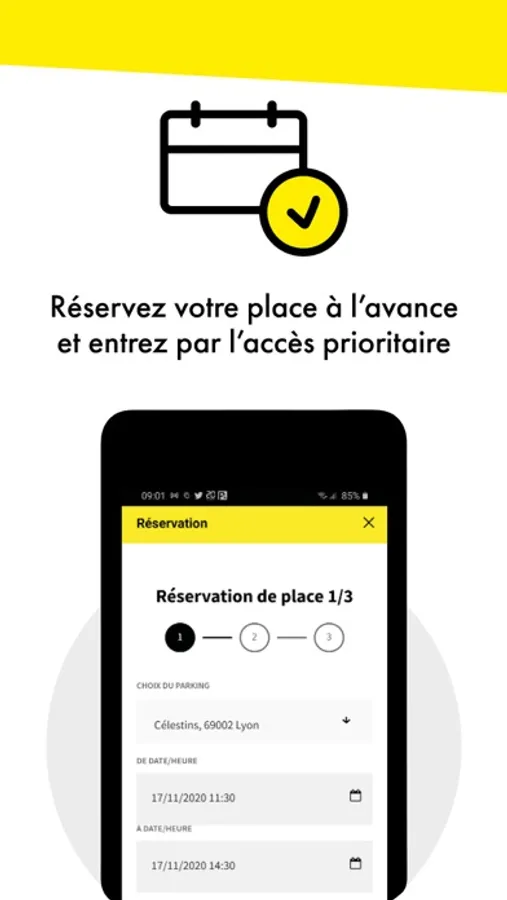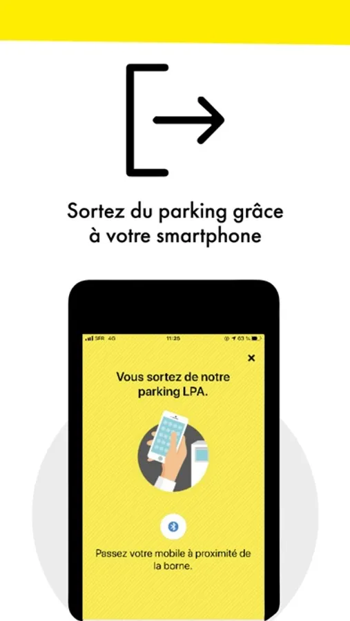 - DEMATERIALISATION* : entrez et sortez des parkings en présentant votre smartphone à environ 30 cm des bornes d'entrée/sortie (clients occasionnels, réservations et abonnés**)