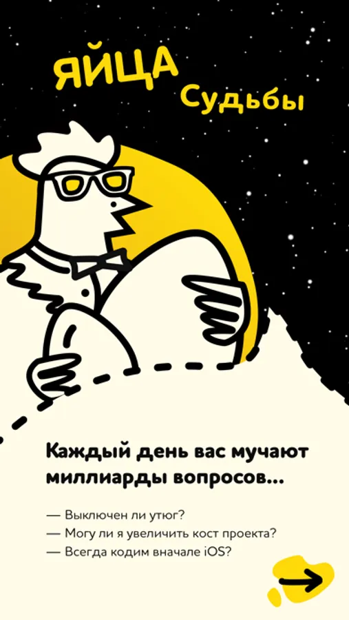 The Eggs of Destiny have the answers to all your questions right on your mobile device! From domestic to philosophy, from complex to simple, from business to private - there are no secrets from the Eggs of Destiny.