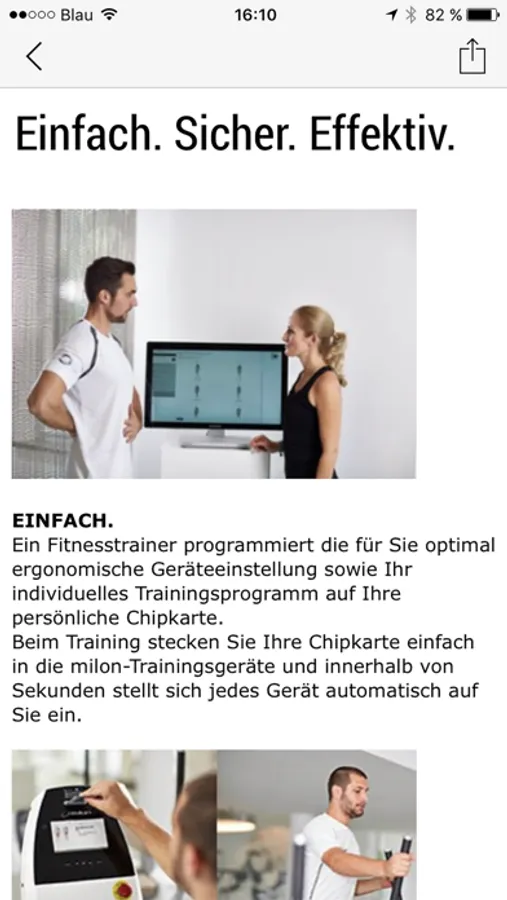 Informationen wie Club-Öffnungszeiten, Kontakt, Trainingstipps sind immer dabei und können sofort per Email an Freunde verschickt werden.
