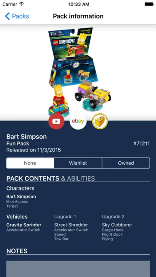 'My Collections: LEGO Dimensions Ed.' is an unofficial app and intended to be used for informational and educational purposes only. 'My Collections: Dimensions Ed.' is NOT licensed by, endorsed by, or associated with Warner Bros., Lego, or the makers of Lego Dimensions.