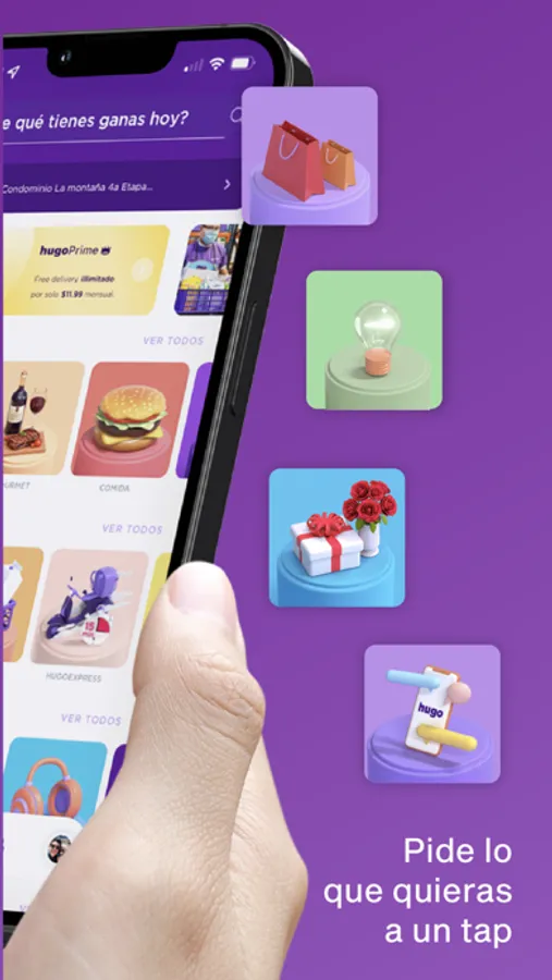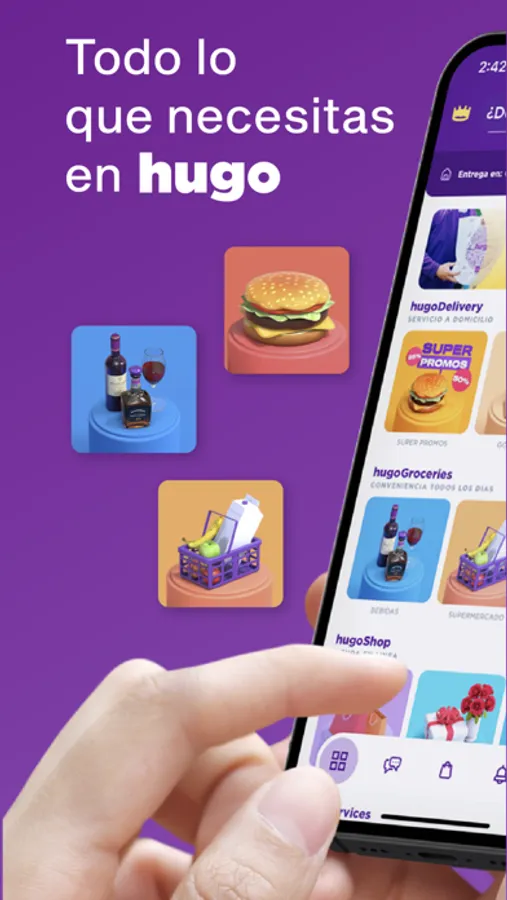 Con hugo recibe todo lo que necesitas hasta donde estés. Ordena comida de tus restaurantes favoritos, bebidas, transporte, medicinas, dinero en efectivo, supermercado y mucho más desde la palma de tu mano.