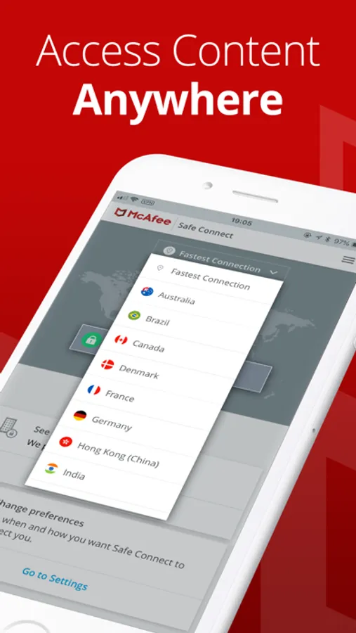 McAfee has a proven track record of providing security for consumers in the digital age. To address growing concerns over Wi-Fi security, we are offering an award-winning VPN Proxy App that provides bank-grade encryption, private browsing services & internet security. McAfee Safe Connect will help protect you from digital threats & unsecure networks. Your device is protected even while it is on a public Wi-Fi hot spot or open network. Your online activity, sites visited, personally identifiable information & other sensitive information (e.g. photos, credit card info & passwords) traveling through the secure VPN connection is protected & private.