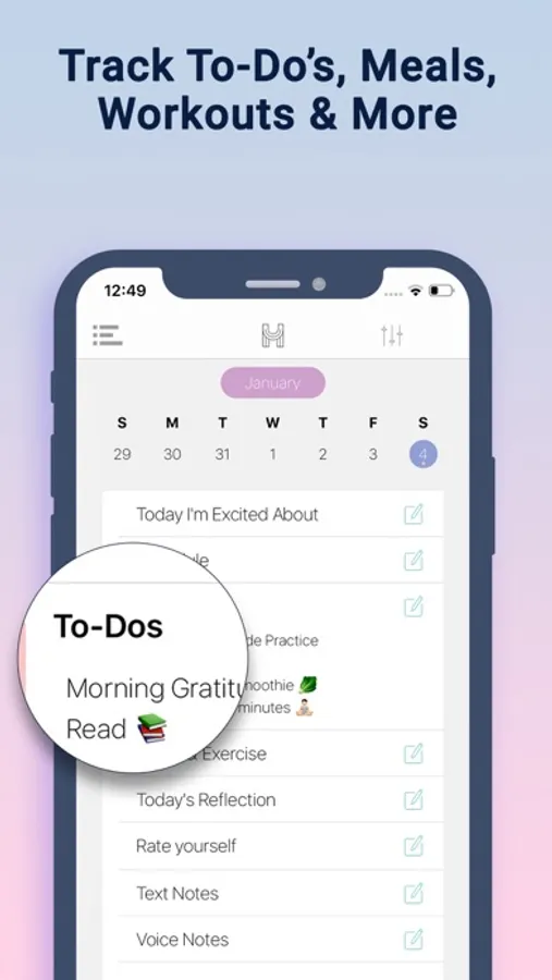 - Daily Exercise and Meals: Record your daily meals & exercises, and explore the connection they have with your happiness, mood, energy and productivity.