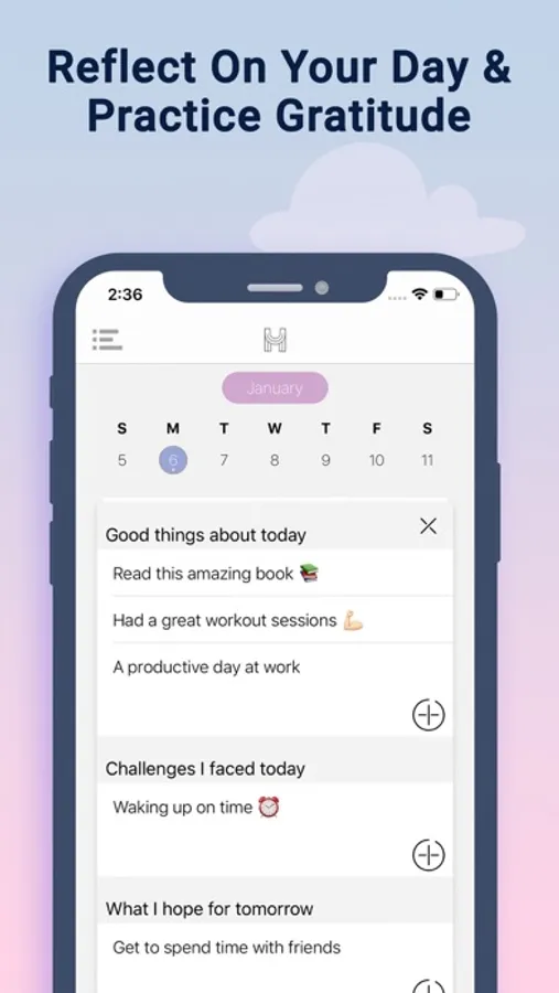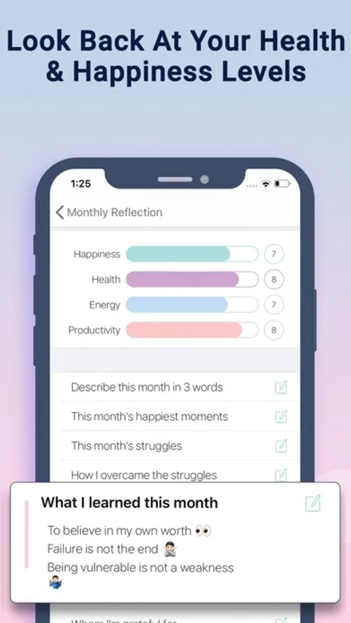 - Monthly Reflection: Reflect upon the month with this gratitude journal app. Look at how you’re doing and feeling. It's your own progress report that helps you decide your next steps.