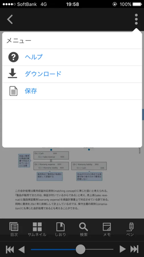 しおりを付けたり、メモや書き込み機能に加え、高速な検索機能も実現。