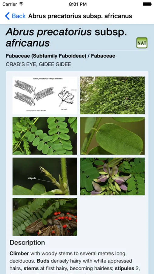 At the core of this app is an interactive identification key powered by Lucid. The key includes 1140 plant species that grow in rainforest of eastern Australia, from Rockhampton to Victoria. To help confirm identification the app provides line drawings, over 8,000 photos and extensive information on each species, including previously unavailable botanical details. A customised image gallery walk-through tutorial assists the user in working the key and accessing the content. The introductory sections include information and images on rainforest and the types of rainforest used in this app. Hints are provided on how to identify rainforest plants as well as an outline of the special features and terms used to separate the many species that on first sight appear to be inseparable!