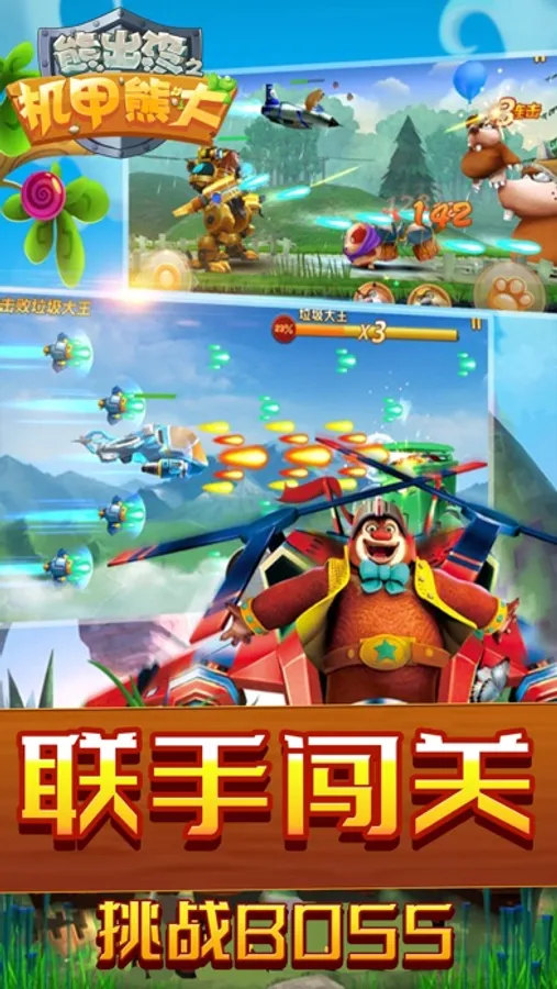 游戏采用独有的合体闯关系统,给你颠覆性的冒险手游体验,正宗机甲元素,带你体验不一样的熊出没冒险之旅!《熊出没之机甲熊大》将酷炫机甲与熊出没世界完美结合,创造了一个宏大的机甲冒险世界。多款炫酷机甲引发玩家养成浪潮,多样化的冒险关卡让玩家在战斗中拥有高自由度的选择,既可以选择怒战BOSS挑战极限,又可以冒险闯关夺取宝藏,更多玩法还等玩家亲自体验。