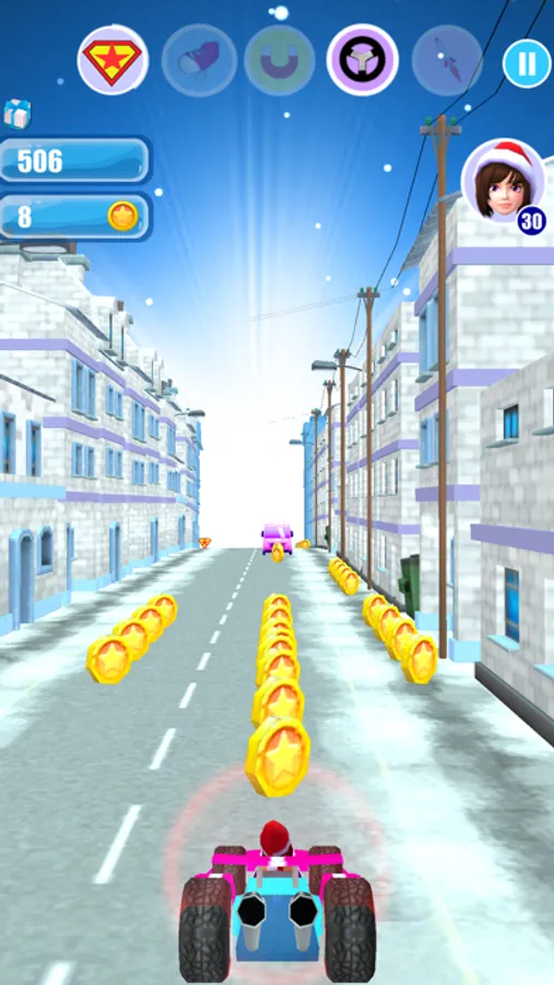 - Amazing power-ups: coin magnet, rocket, super go kart, jetpack etc.