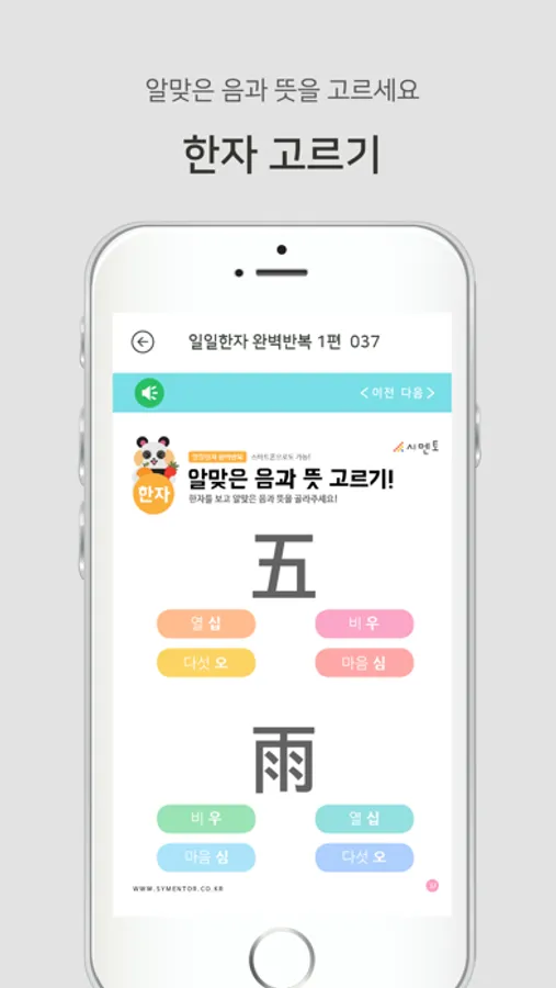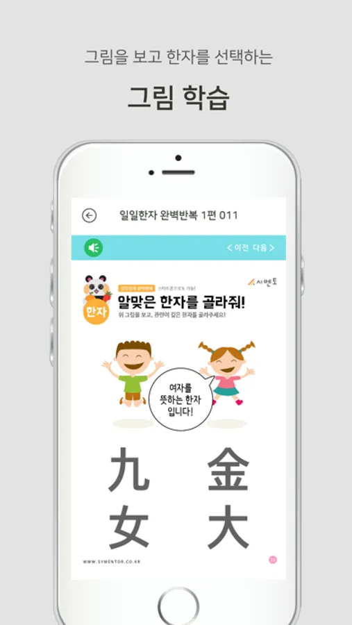 한자를 재미있는 퀴즈로 즐기면서 반복학습하는 교육앱입니다. 어른들에게도 매우 유용한 학습앱으로 아이와 함께 도전해보세요! 한자 뜻과 음 맞추기, 그림보고 연상되는 한자 찾기 등 아이들이 즐겁게 즐길 수 있는 시멘토 프린트의 한자학습지를 앱으로 개발하였습니다.