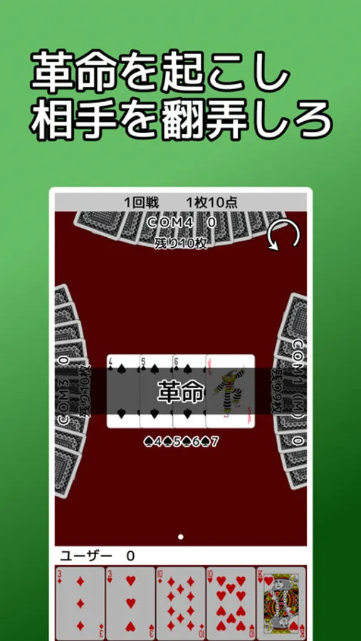 ・ Revolution (when 4 or more cards are played, the strength of the cards is reversed)