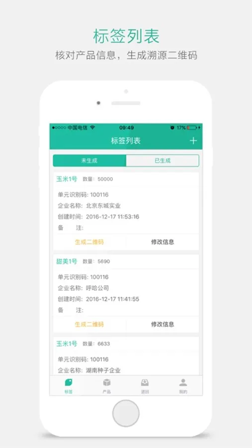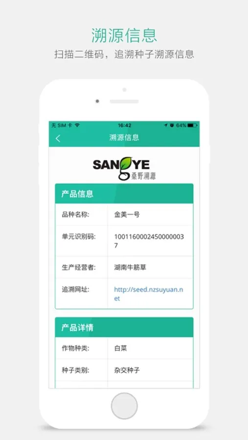 桑野追溯平台是专门为种子生产经营者定制开发的成套集成应用管理系统,该系统将种子生产、加工、包装、流通等环节的数据串联起来,最终实现一个二维码对应唯一 一个最小销售单元种子。