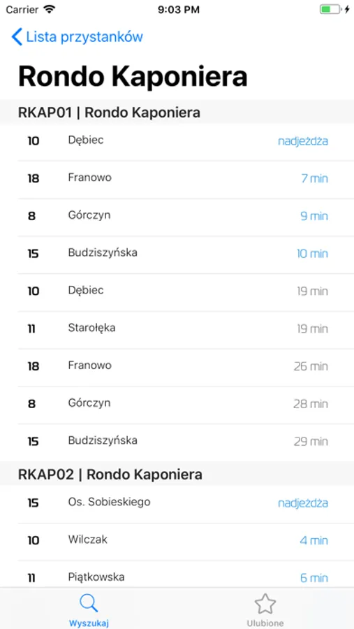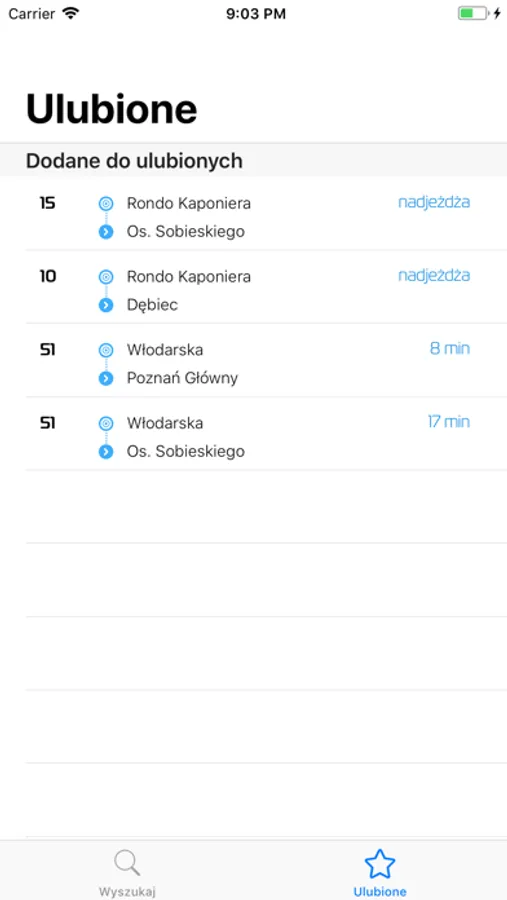 Wystarczy, że uruchomisz aplikację i wyszukasz przystanek! Później będzie już tylko prościej. Najczęściej używane linie możesz dodać do ulubionych - po prostu przesuń palcem w lewo na ulubionej linii.