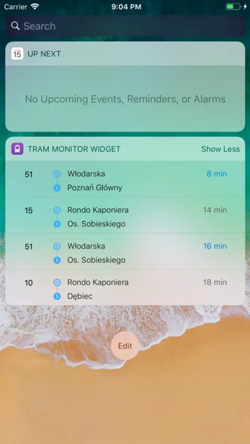 Zapamiętane linie z ich aktualnymi czasami odjazdów (bazującymi na pozycji pojazdu pobranej z systemu GPS) możesz szybko wyświetlić na widgecie!