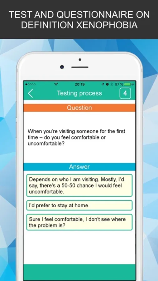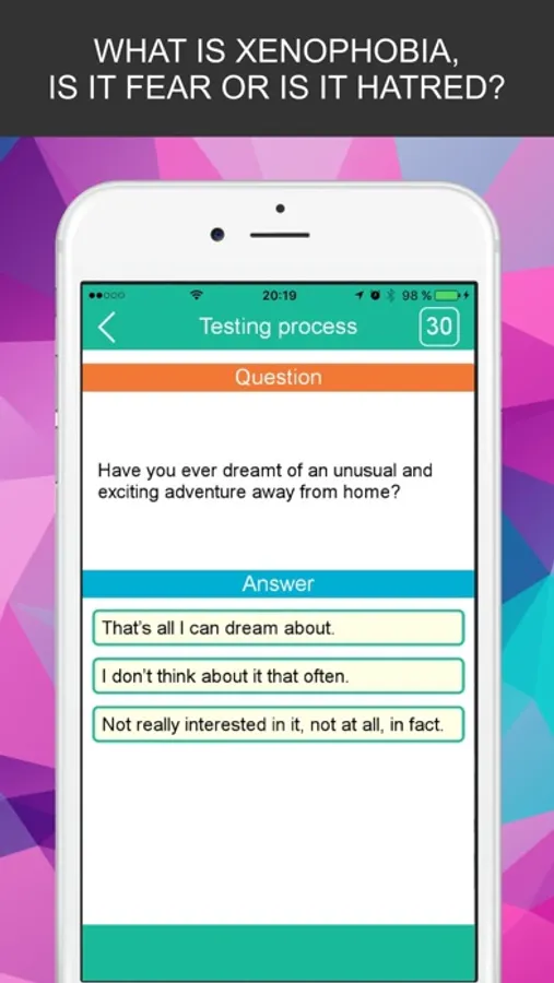 Do you worry or have a nagging doubt whether you belong to the group of xenophobic people? Take this test the app "Definition Xenophobia" and it’ll help you to understand yourself better and maybe even discover something new about yourself…
