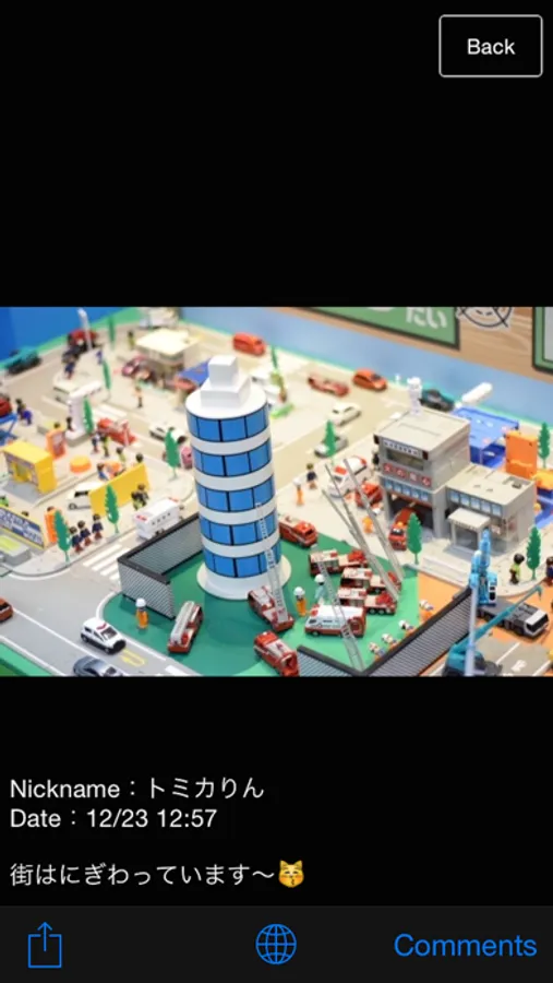 With this app, you can post the photos of 'PLA RAIL' ; model railway, and 'TOMICA' ; model cars, which are popular among children (and adults also) all around the world.