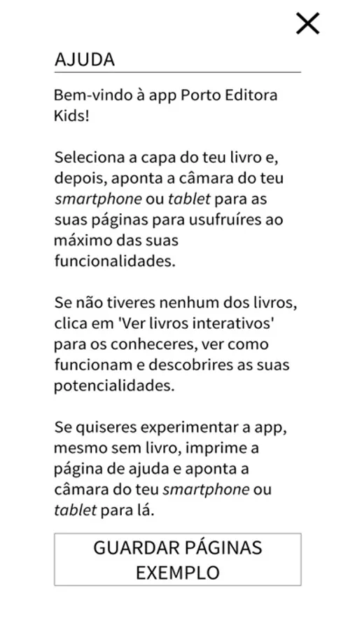 Ao explorar os livros com esta app, apontando a câmara do dispositivo para as páginas, poderá aceder às seguintes funcionalidades: