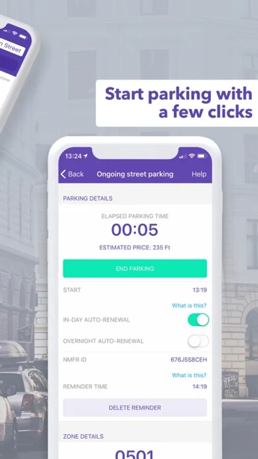 • You can set a reminder in the app, so you don’t forget to stop your parking.