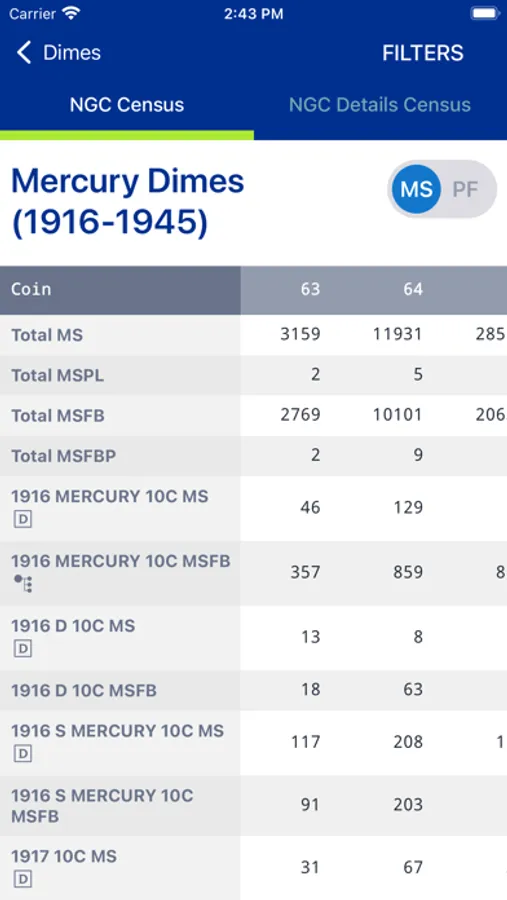 Browse the NGC Census to see population data for NGC-certified coins by type and grade (including NGC Details grades) to help you research the relative rarity of your coins. NGC Census population data is updated every week.