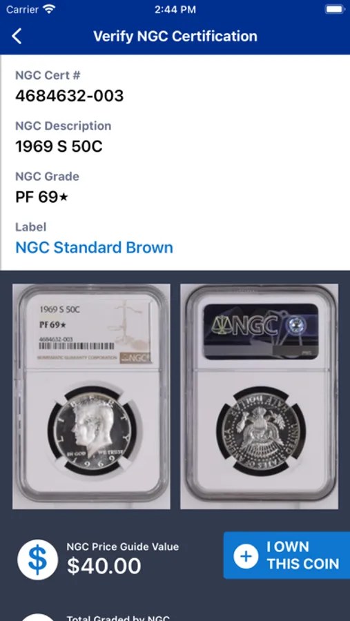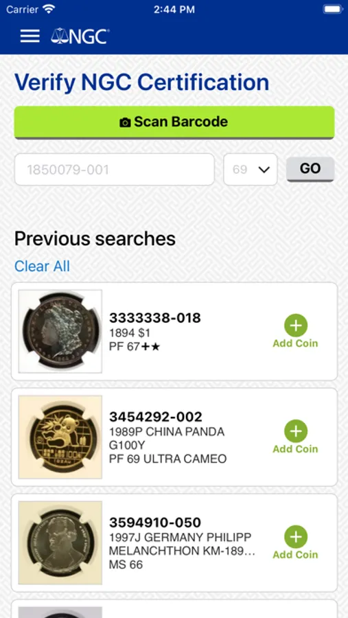 Scan the barcode on an NGC label with your phone’s camera to instantly verify the coin, view NGC Census population data, view NGC Price Guide values for US coins and add the coin to the NGC Registry. Images are shown for nearly 20 million NGC-certified coins.