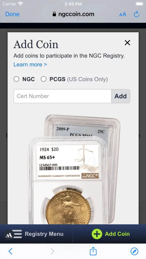 Register and display your NGC-certified coins and compete against other collectors around the world for recognition and prizes. The NGC Registry helps you to organize your collection, learn more about coins and interact with other collectors. This popular resource now boasts more than 12,000 members, 110,000 registered sets and 1.1 million registered coins from virtually every country. Free images are available for most coins graded by NGC since 2008, so you can spend less time taking photos and more time enjoying the hobby!