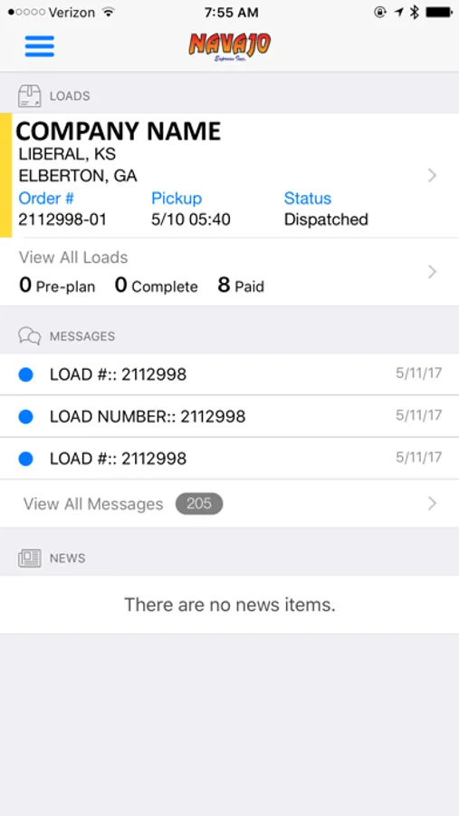 The Navajo GO application was created with our drivers in mind. You can do many things with this app: view load and stop detail, view maps, send & receive messages, scan & send documents, view news, report safety issues, and much more all anywhere you happen to be. Navajo Express always puts our drivers first, in spirit and in practice.