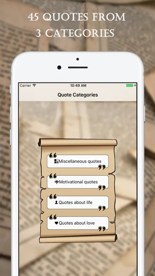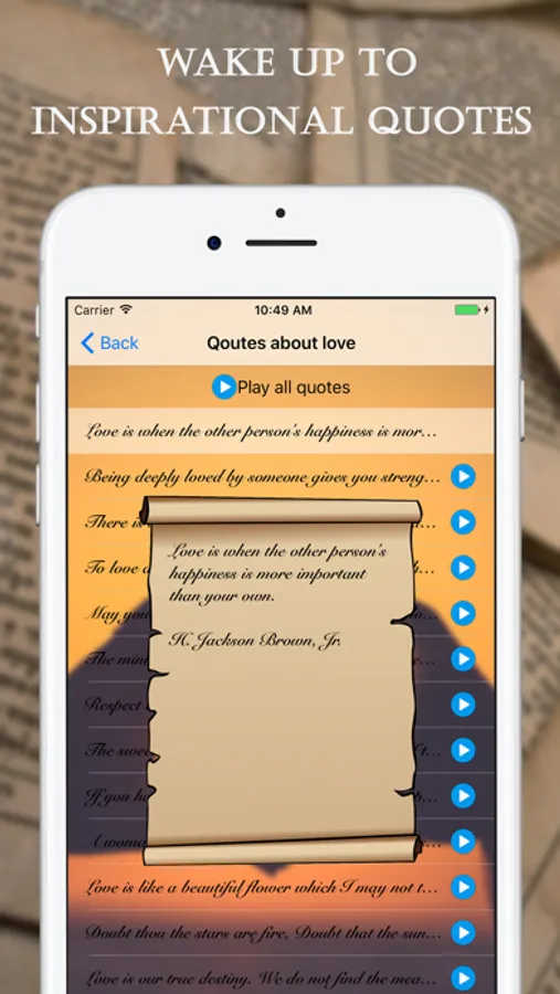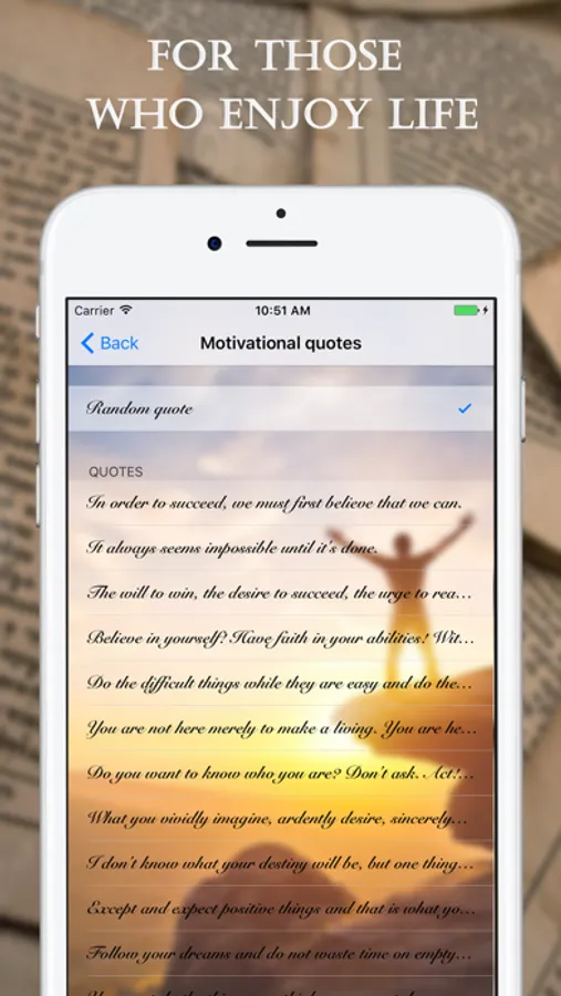 • 45 alarm quotes to choose from 3 categories - motivational, life and love;