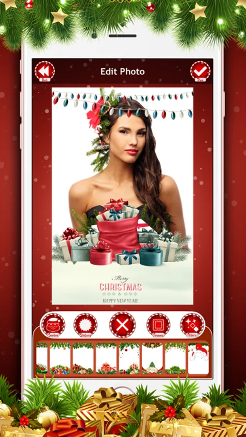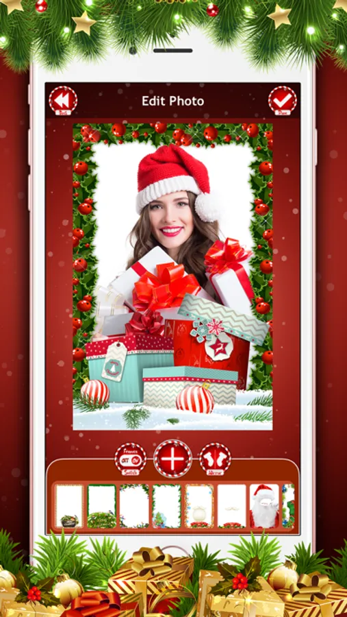 Easily and with a lot of fun! Take a new pic or get the one from your photo gallery, add a Christmas photo frame with wonderful Xmas decorations and ornaments, add some sparkles and Santa Claus hat and dress up ready for the best Christmas and New Year party. Make the moments of this holiday unforgettable, live up your memories with these fantastic photo frames and stickers. Merry Christmas everyone!