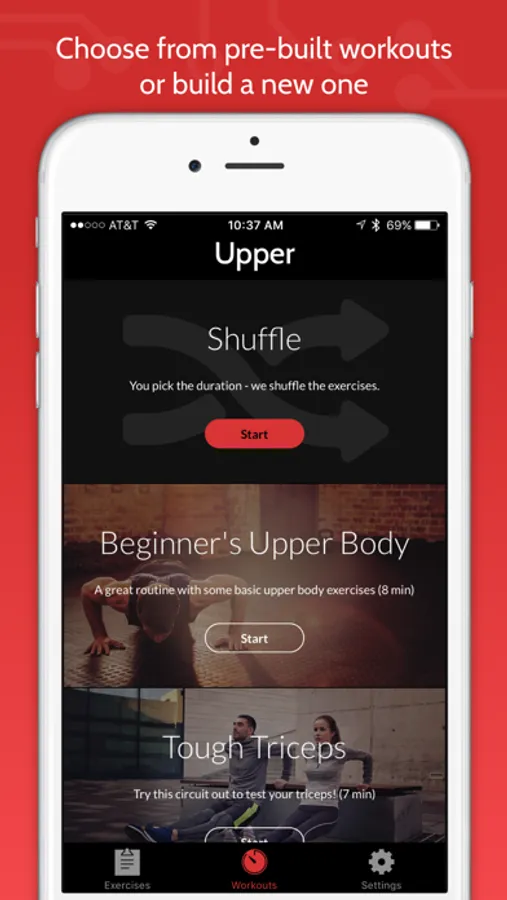 You pick the type of workout you want, the duration - we do the rest by shuffling the exercises!