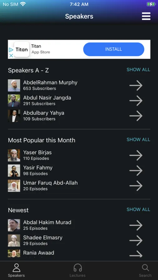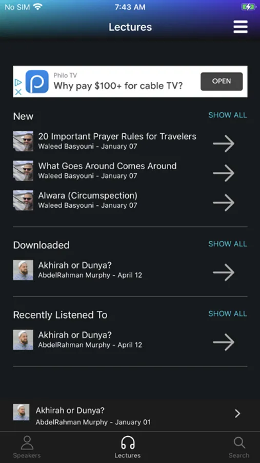 Discover thousands of inspirational and informational Islamic lectures at the touch of a button. Select your favorite speaker from a list, and then choose a lecture to stream in HD audio.