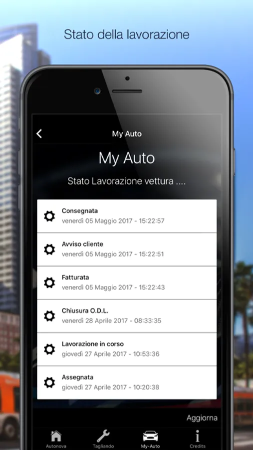 Una volta avviata l'accettazione e il lavoro di assistenza e manutenzione della tua autovettura, potrai verificare direttamente lo stato di avanzamento del lavoro.