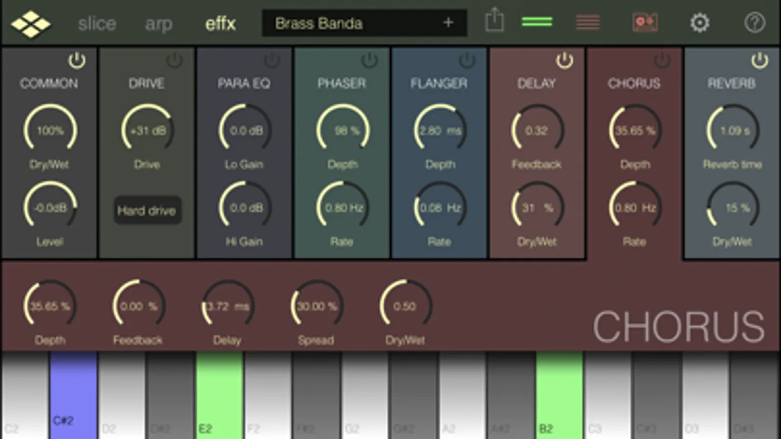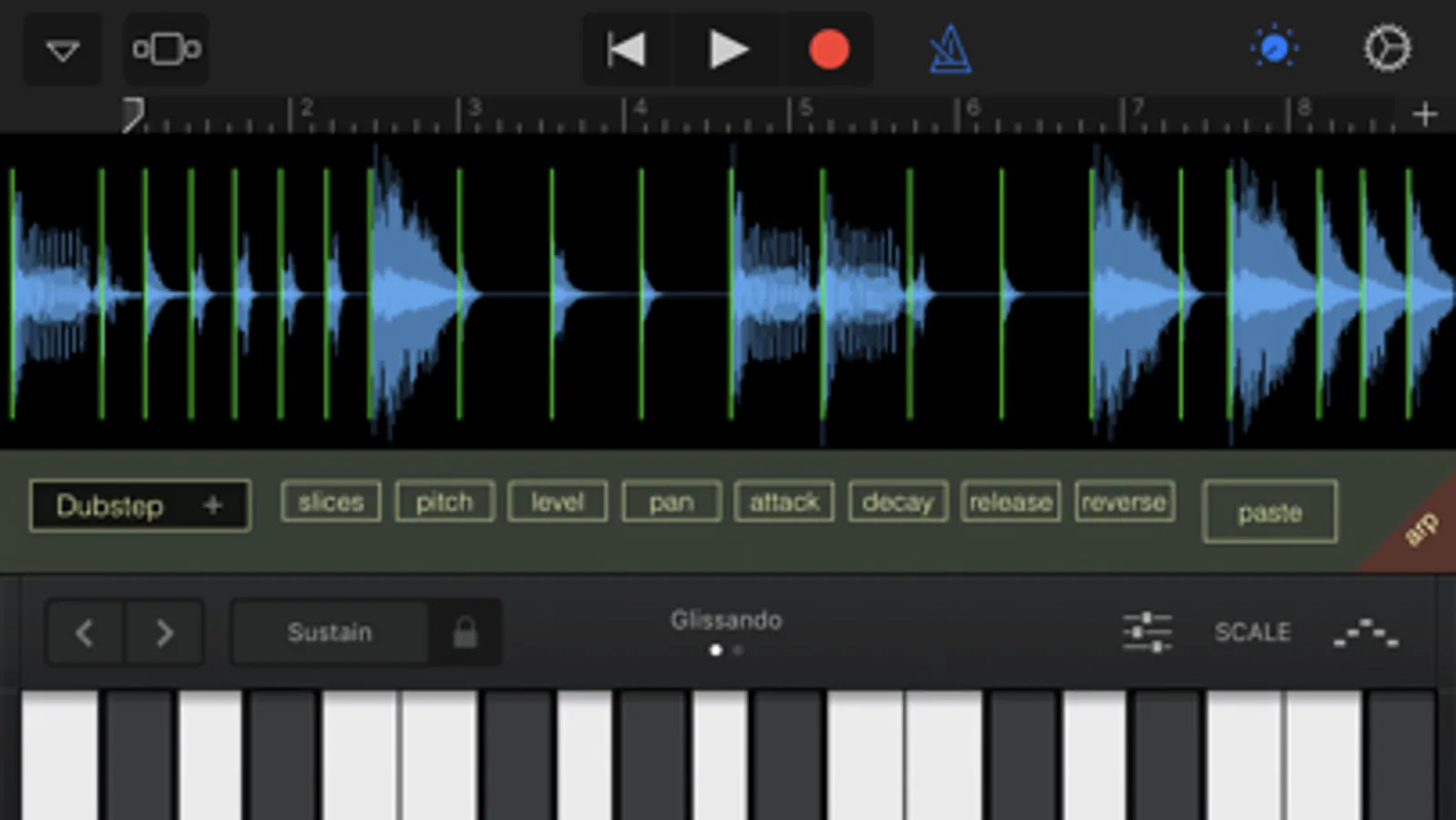 • Play slices live with the onscreen keyboard.