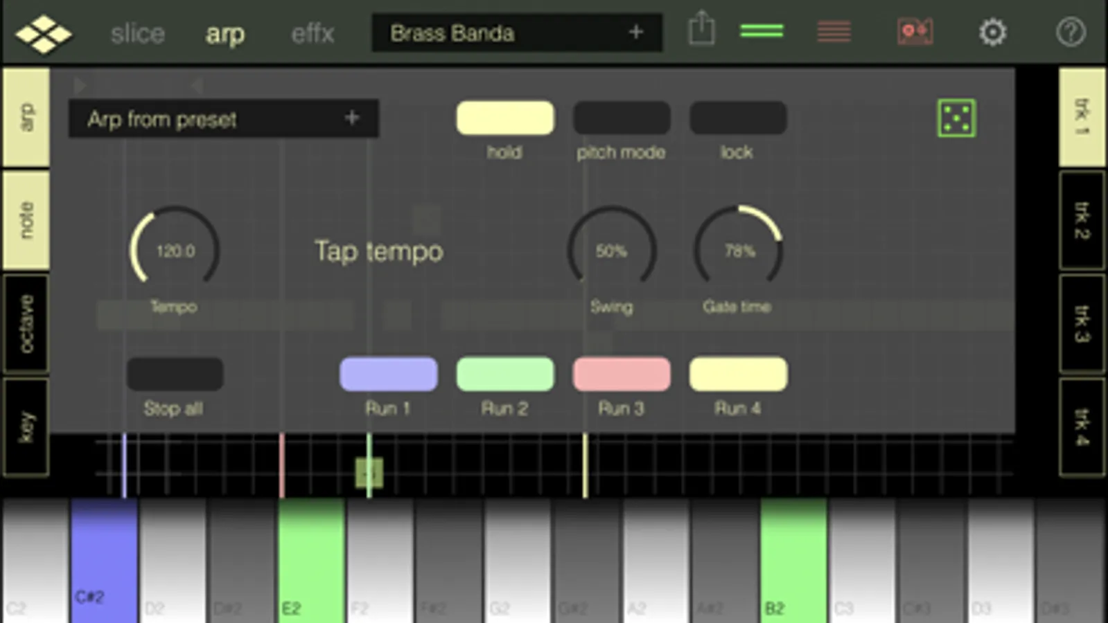 • Trigger slices using 4 arpeggio parts with different settings