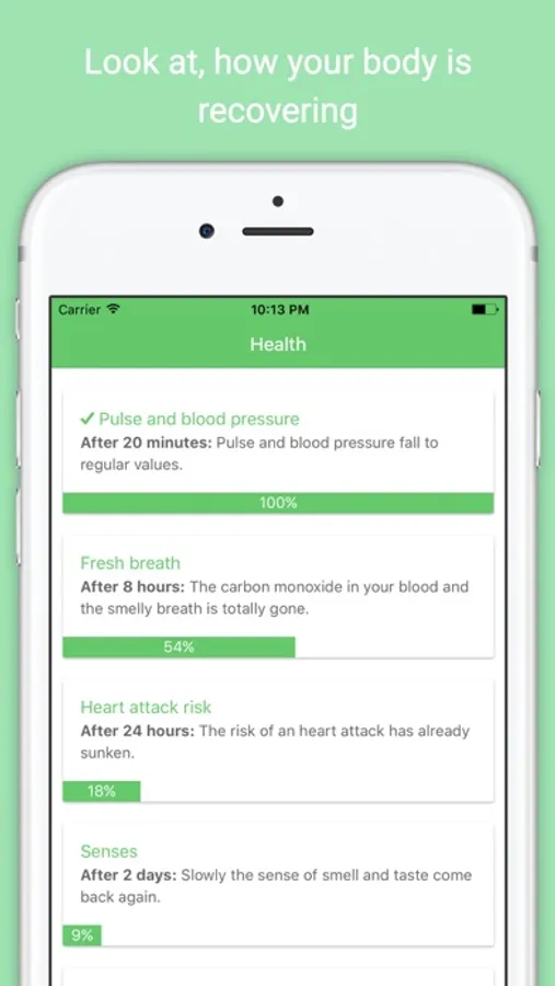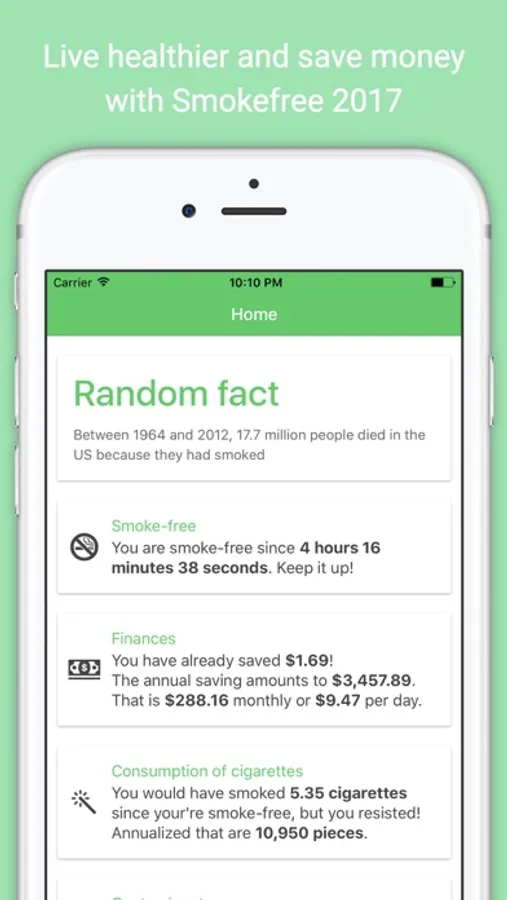 With interesting statistics, health effects and own targets you are always motivated after the smoke stop.