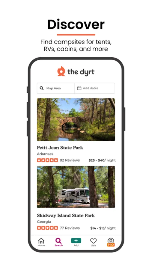 Find and book your perfect campsite anywhere in the U.S. The Dyrt is home to an active community of over one million campers, and is the #1 camping app for iOS. Search 50,000+ campgrounds for tents, RVs, trailers, cabins, and glamping. Plan your perfect trip and reserve campsites near lakes, hiking trails, and more.