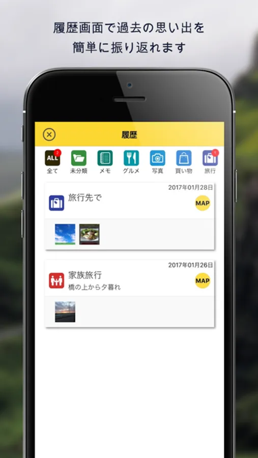 マメモは機能をシンプルに絞りつつも、その地点に写真とメモを残す事が出来ます。またタグ管理によりメモした内容をスマートに仕分ける事が出来ます。