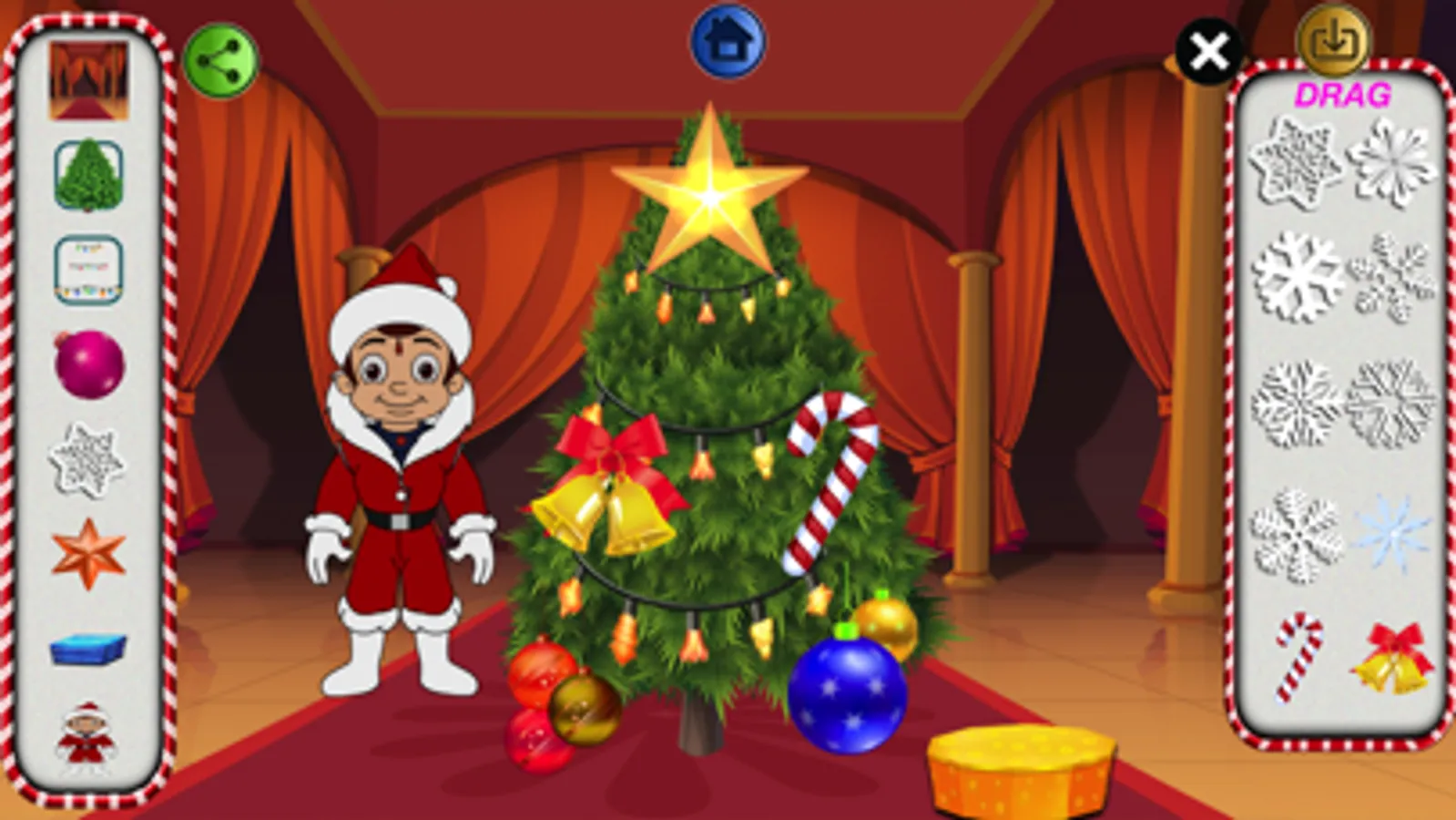 Dress up Chhota Bheem, Chutki, Kalia and then Raju in Christmas clothes.