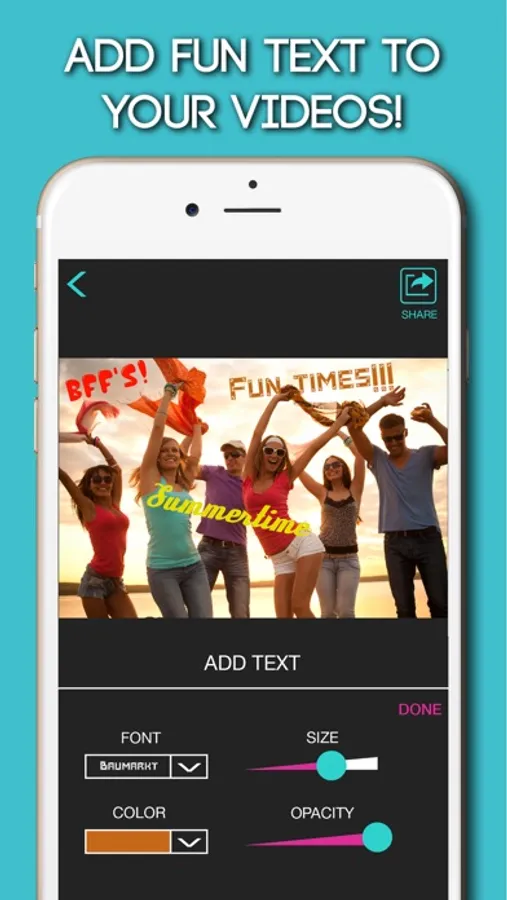 - Add customized text layers to your videos.