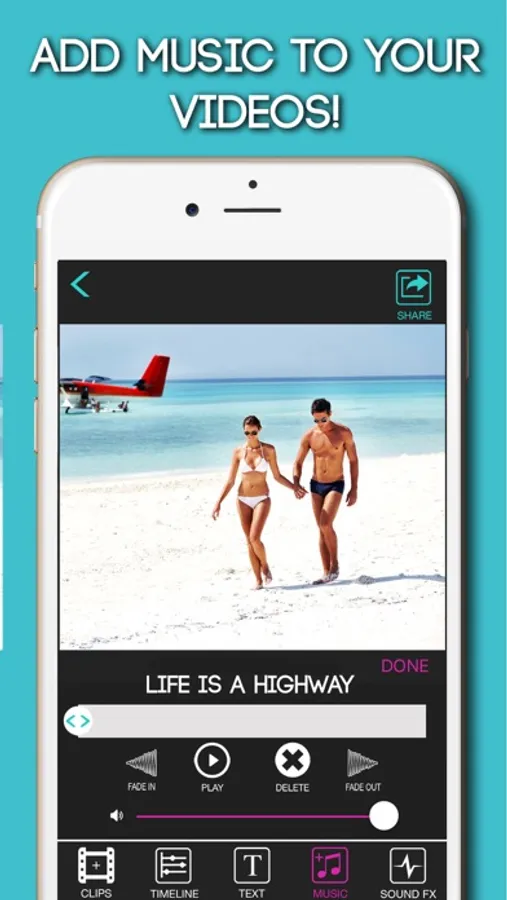 - Control where all your music, text, and effects appear from one simple and easy to use timeline scene.
