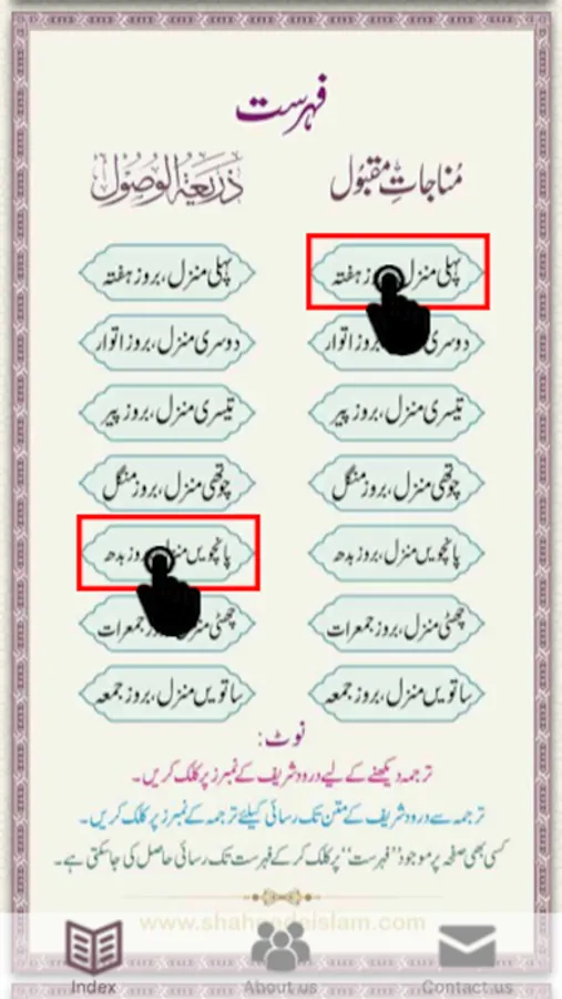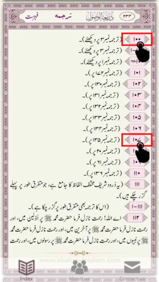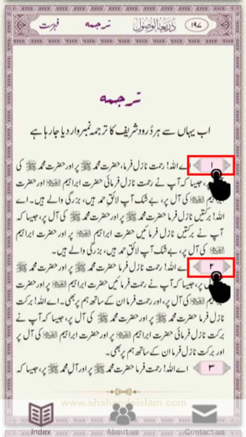 *** Further, the translation of a particular "Durood Sharif" can be viewed by clicking its number, and vice versa.