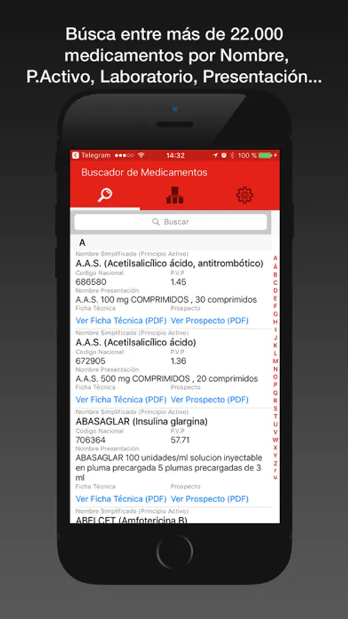 Vademecum Médico con más de 22.000 medicamentos aprobados en España y más de 4.00 Fichas de Principios Activos para consultar desde tu iPhone®, iPod Touch® o iPad®.